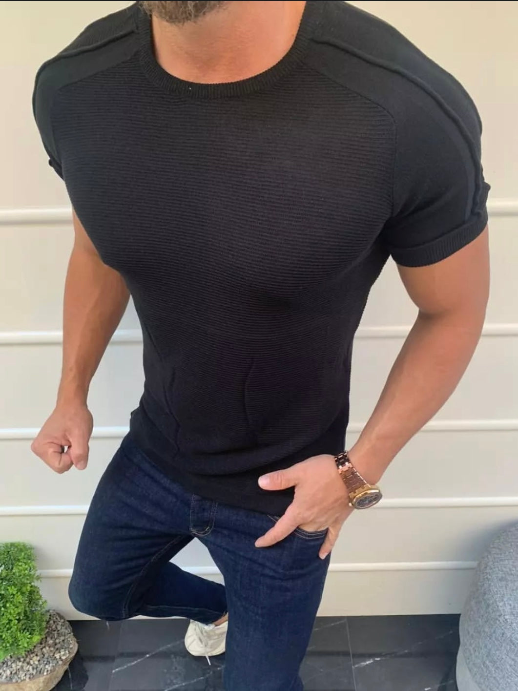 Μπλούζα κοντομάνικη πλεκτή μαύρη